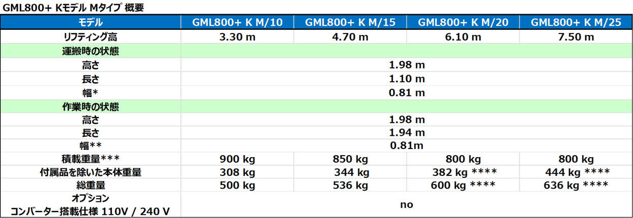 GML800+およびGML500+リフトシリーズは、重量物の取り扱いにおいて優れた性能を備えたラインアップです。